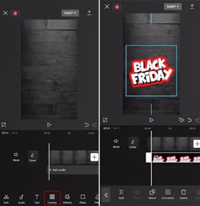 از بخش add overlay استیکر مورد نظر خود را انتخاب می کنیم. و وسط کار می گذاریم.