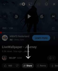 ابتدا ویدیویی که میخواهید دانلود کنید را پیدا کرده و روی آیکون Share بزنید.