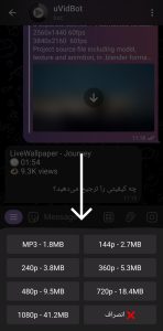 انتخاب کنید که آیا میخواهید لینک دانلود ویدیو برای شما فرستاده شود تا با کلیک بر روی آن دانلود شما شروع شود یا که میخواهید آن را بهصورت یک فایل در تلگرام داشته باشید.