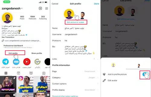 اگر بخواهیم هر دو را نمایش دهد باید روی edit picture and avatar بزنیم.